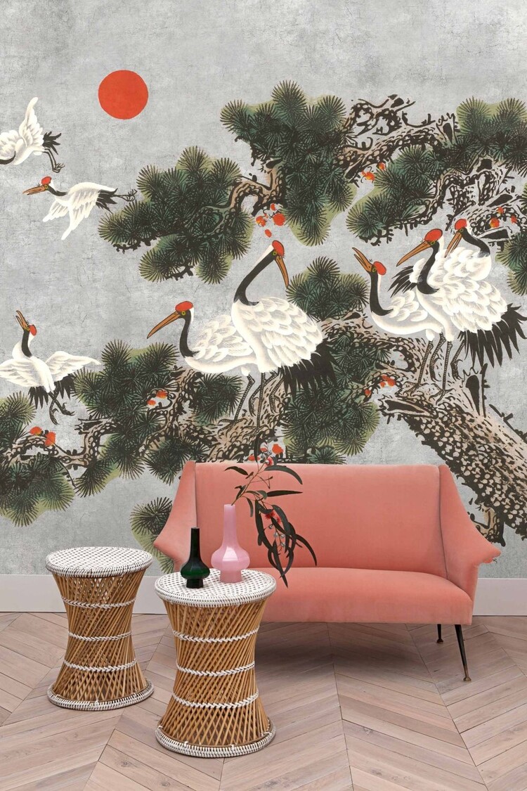 Coordonné's “Random Chinoiseries II” collection is inspired by famous frescoes with oriental influences of the extravagant landscapes that once adorned the walls of ancient Japanese and Chinese dynasties. An abundance of ornaments immerses the viewer in a utopian setting, where mountain landscapes, whimsical flowers, birds and unique creatures evoke wonder.