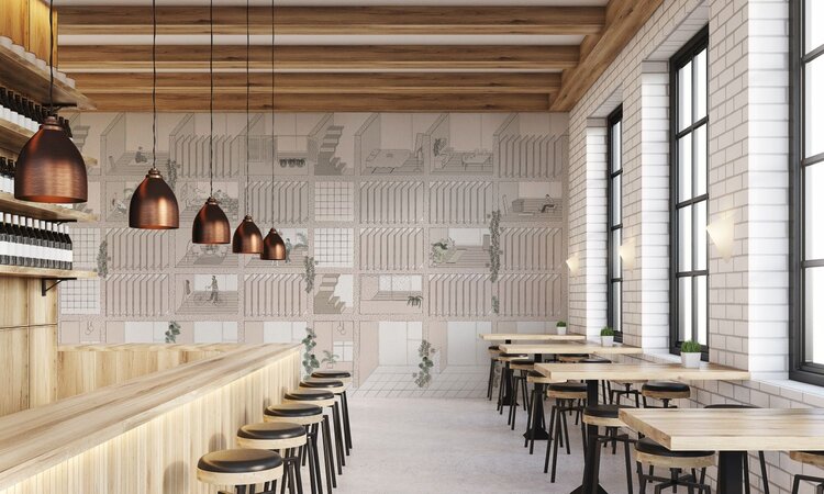 The special Spanish Coordonne wallpaper is industrial and vintage and has its own character.