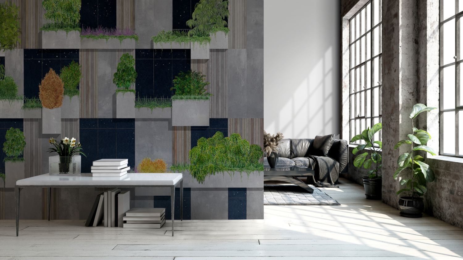The special Spanish Coordonne wallpaper is industrial and vintage and has its own character.