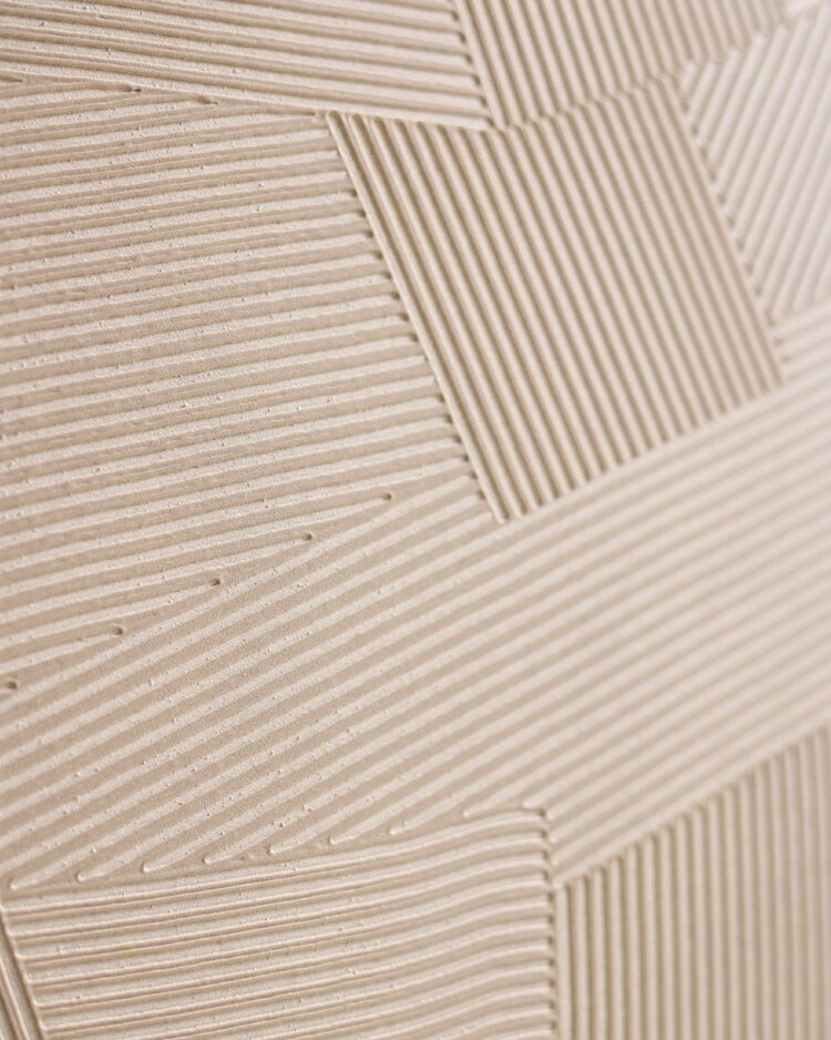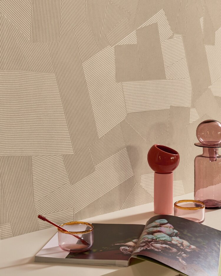 This collection by Élitis is a collaboration with Callidus Guild. It is based on the simplicity of traditional plasterwork and celebrates imperfect simplicity. Each stroke reflects the mastery of ancient techniques, meticulously replicating and refining the nuances of traditional plasterwork, a testament to meticulous craftsmanship. The collection is complemented by a special abstract floral panorama. In this wall covering, 18th-century floral motifs, which originally appeared in the finest hand-woven silk, have been enlarged and meticulously hand-painted in several variations.