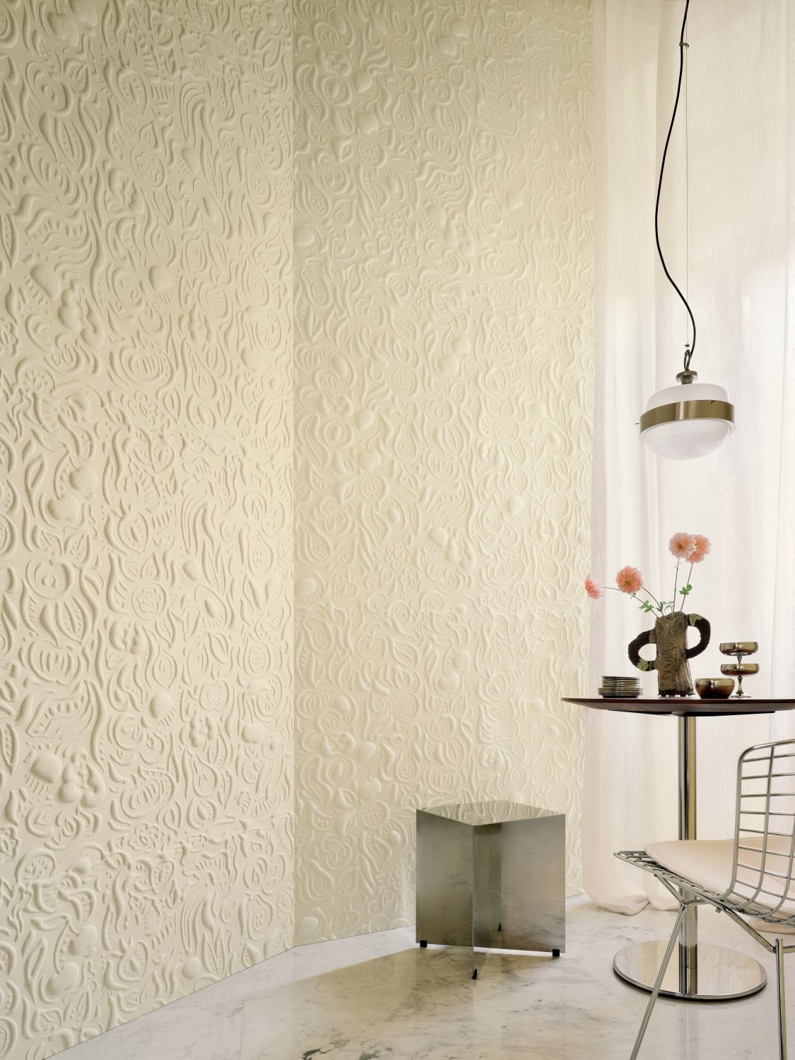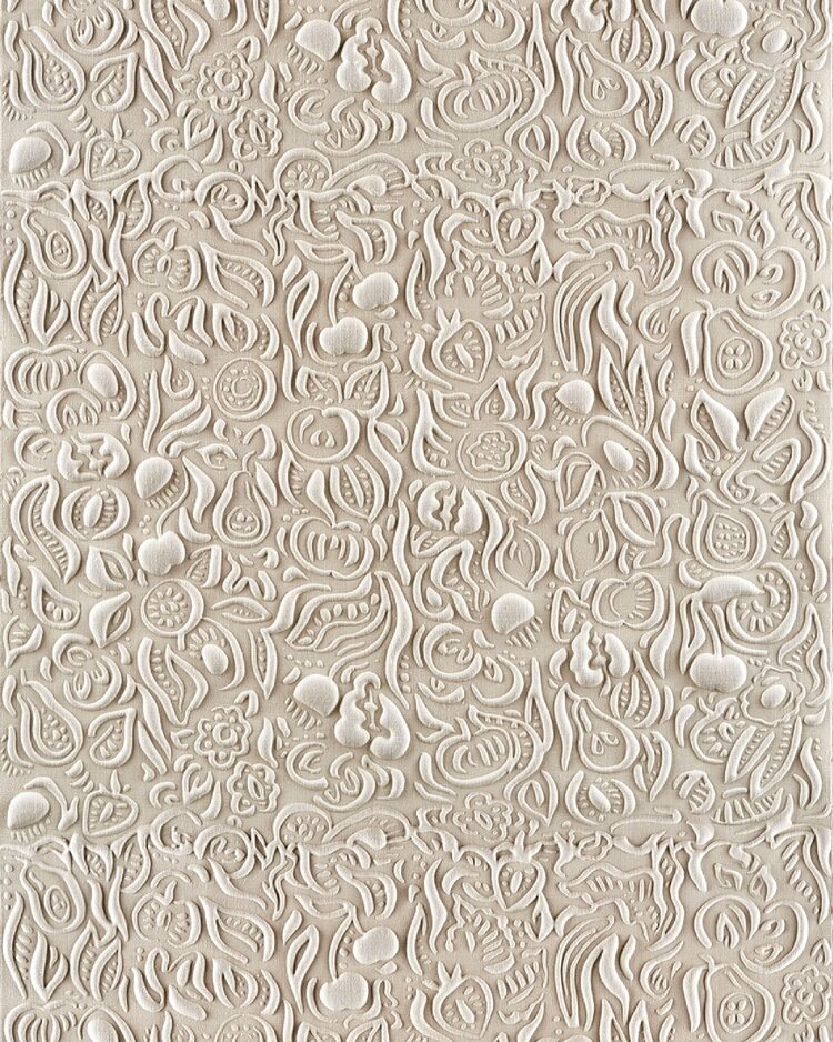 These creations play with light and shadow to create a soft, almost sculptural depth. In this three-dimensional decor, fruits and berries appear to be carved directly into the wall — forming a dreamlike garden in bas-relief, where jewel-like shapes emerge naturally from the surface.