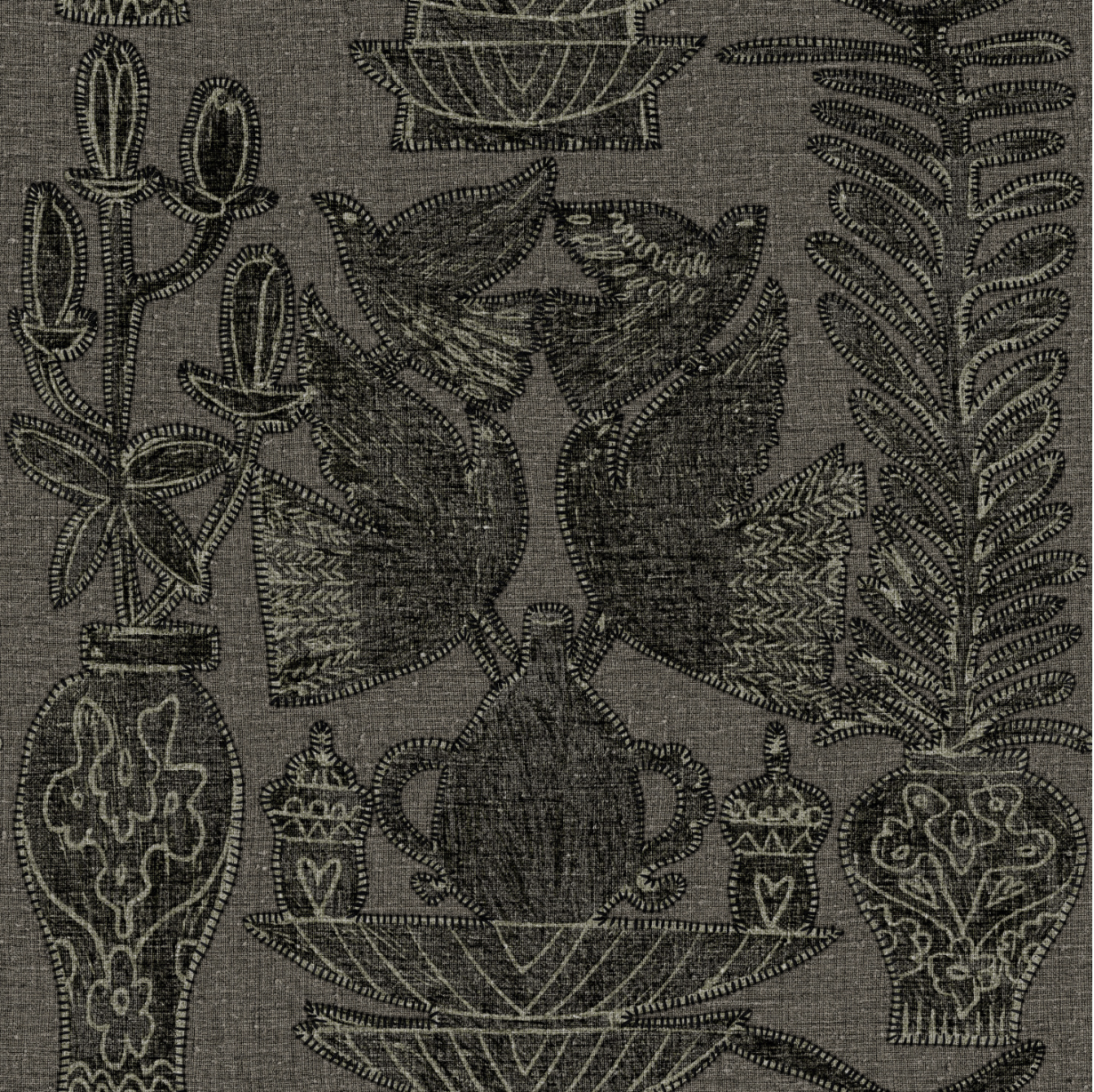 Paros is a wallpaper with the look and feel of linnen, with beautiful pattern filled with birds, plants, vases and pots. This wallcovering by Elitis from the Lin Brodés collection has a weaving that makes it look like the rustic fabric, with an upstanding pattern that adds texture to your wall. A natural wallpaper that is perfect for a warm, luxe and atmospheric interior.