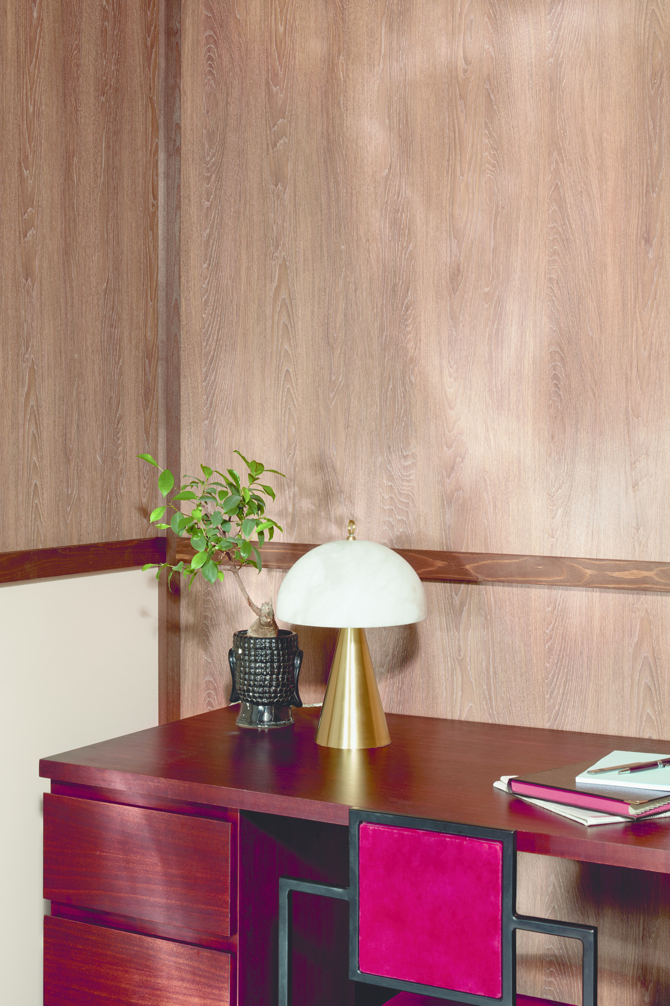 Sève is a wallpaper with the look and feel of real wood. This wallcovering by Elitis from the Marqueteries collection has a wood veneer, that gives this wallpaper an authentic looking woodlook. A rustic wallpaper that is perfect for a warm, natural and atmospheric interior.