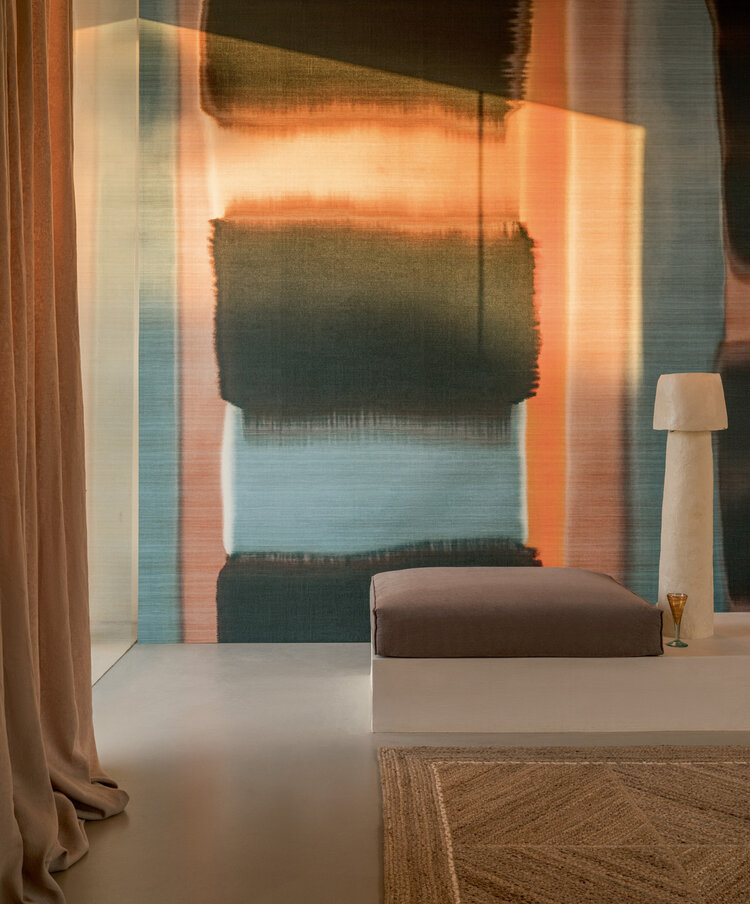 A beautiful interplay of Oriental textiles with abstract art in mesmerizing colors. The Cérès collection by Elitis includes hand-woven Southeast Asian fabrics such as Thai linen subtly enriched with abstract prints.