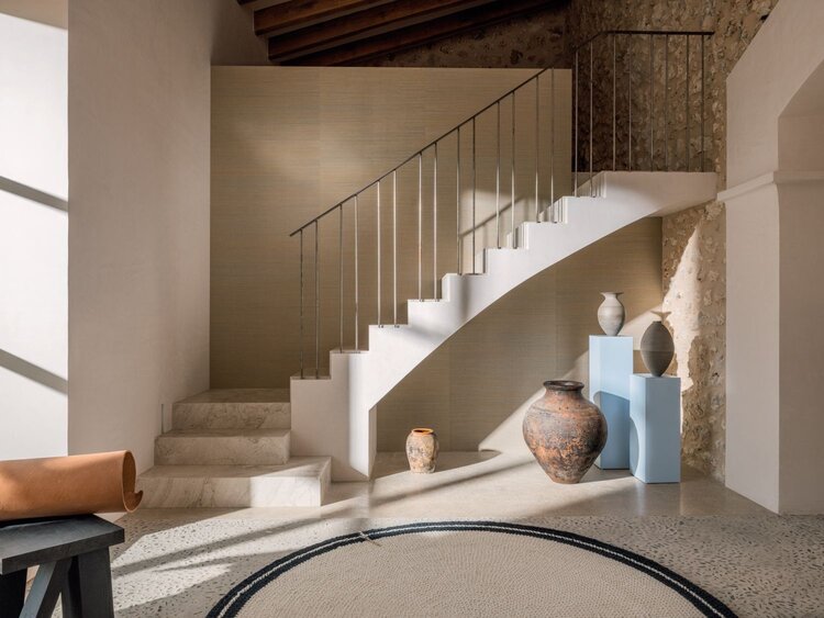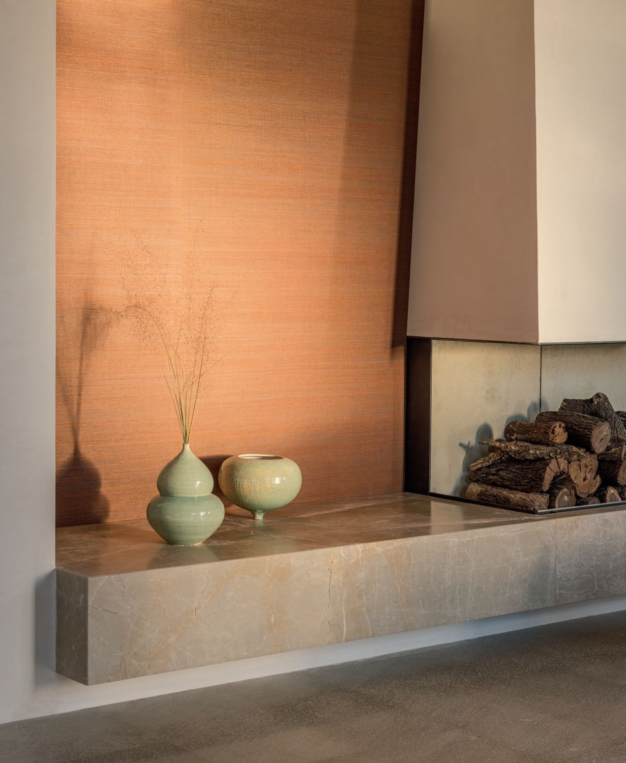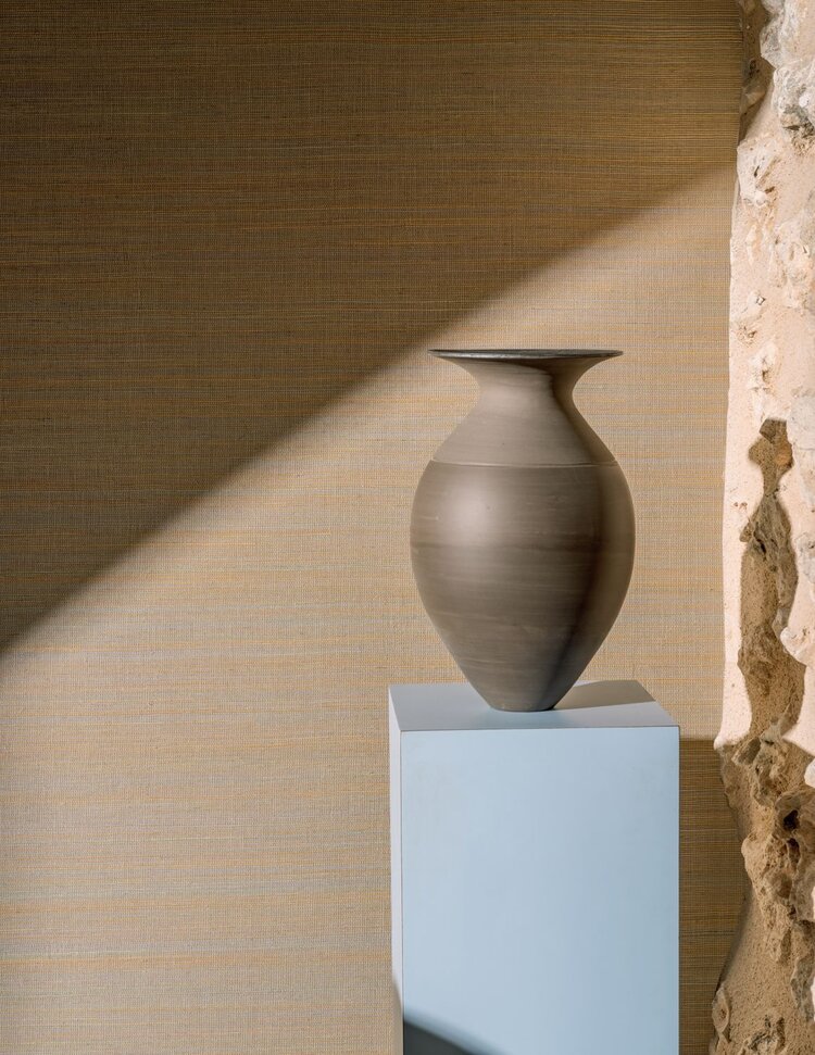 Tribus is a playful collection of natural fibers such as sisal, abacá and arrowroot, with unique textures and colors. Oriental embroidery and raffia create a bohemian look. Large wall panels with Spanish influences are hand-painted on silk. Tribus gives plant fibers a modern, colorful twist.
