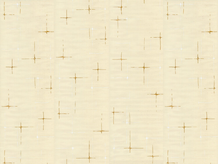 Urban chic in its purest form: where raw and refined meet, and plant-based materials are combined with artistic elements. Sleek lines in gold, silver, and copper on a gesso background add a touch of subtle luxury. Clouds and stars enhance this feeling with their clear contours. Neutral, natural tones create a calm and elegant atmosphere.