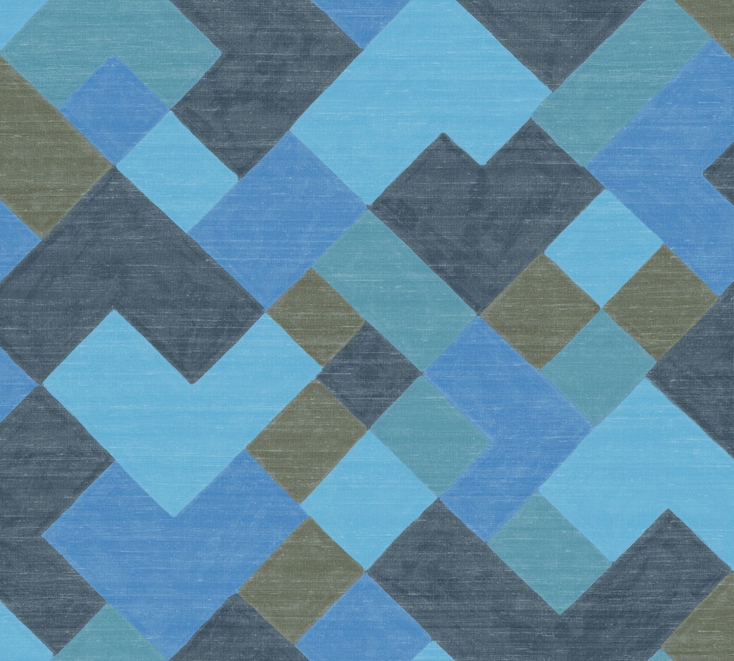 Bold colors, graphic shapes, and abstract patterns create an energetic mix that echoes the art of Anni Albers, the rhythmic facades of Gio Ponti, and the daring prints of Emilio Pucci. And the best part? This silky spirit is captured in vinyl too—a beautifully surprising translation, almost as if the fabric itself is flowing along.