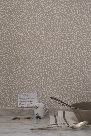 The wallpaper Farrow and Ball Blotsma shows the playful play of petals that are picked up and blown away by the wind. Delicate blossoms in a swirling design.