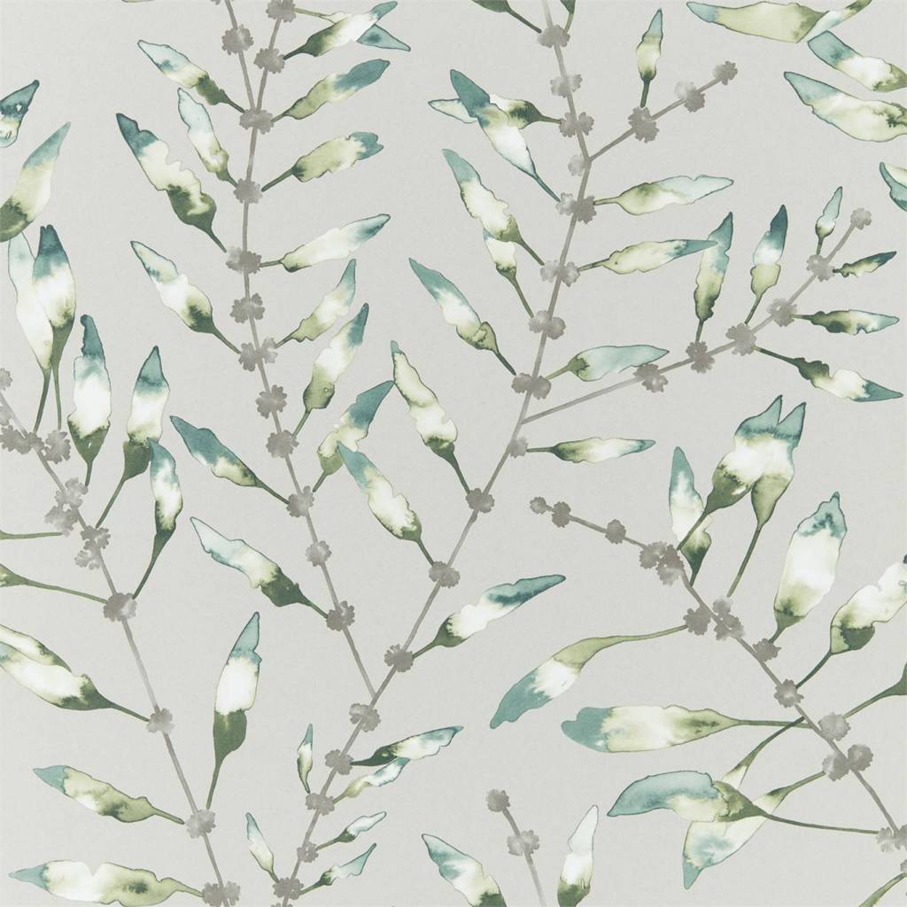 Part of Anthozoa Wallpapers, Chaconia is a delicate sea plant design in a watercolour effect. The light, shimmering mica ground accentuates the inky movement in the designs five moody colourways.