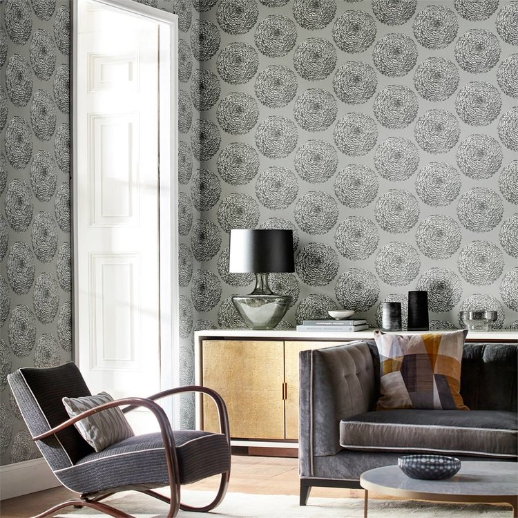 Available in five colourways: Chalk (with silver highlights), Pearl (with soft gilver detail), Titanium (with a flat graphite outline), Onyx (iridescent gold flowerheads on a striking graphite ground) and Rose Quartz (with soft gilver detail).