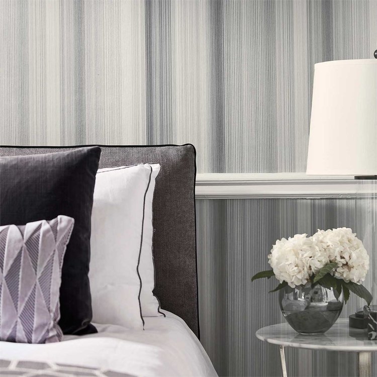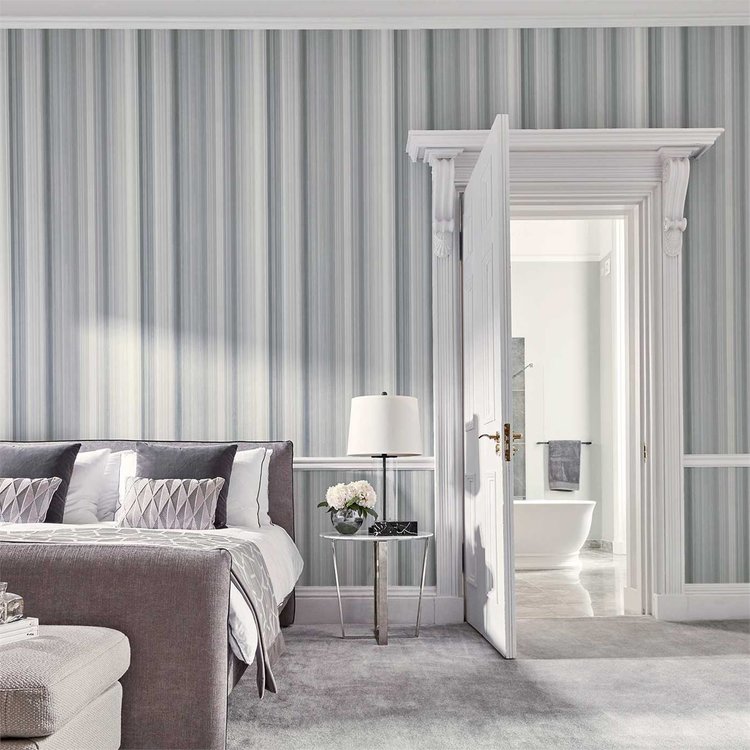 The softly coloured sophisticated stripes of this Harlequin wallpaper offer the ultimate in versatility. Pair with Perpetua (from Textured Walls) for use on all four walls or hang horizontally for an alternative twist.