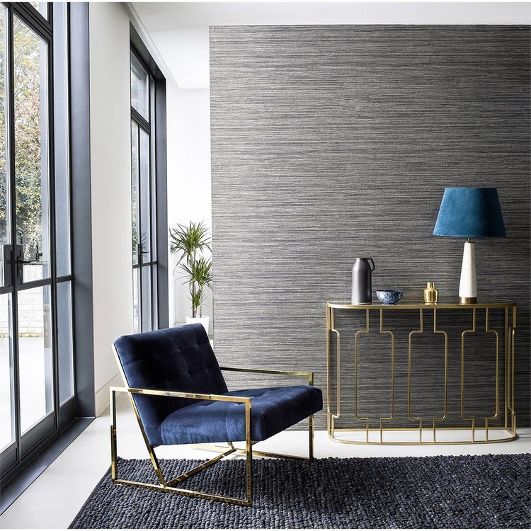 With its grass cloth feel, Lisle is a go to wallcovering for Harlequin texture, with metallic highlights blended throughout the designs horizontal stripes.