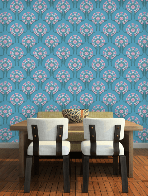 The prolific output of William Morris and the Arts & Crafts movement is widely evident within the National Trust portfolio, not least at Morris’s own London home ‘Red House’. He was a visitor, ‘student’ and 19th Century influencer at the Hencroft Works in Leek, where his friend Thomas Wardle taught and experimented with dyeing fabrics and printing papers with natural inks. This design – a stitched, repeating pattern of stylised cowslips – was found at Wardle’s school of embroidery in Leek, and has been effortlessly translated into a wallpaper design in eight stunning colourways.