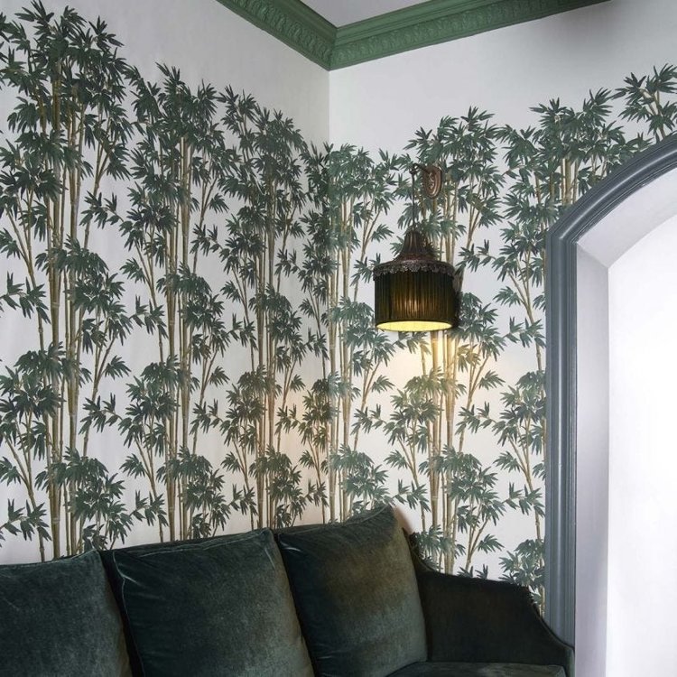 An original ZUBER design reimagined by House of Hackney in a fresh antique-white and rich green colour palette, 'Bambusa' evokes a verdant bamboo forest. This painterly print is designed to create a mural effect across your walls for an artful finish. A verdant design in a lush palette, this wallpaper offers an idyllic backdrop to your interiors scheme. Our wallpaper is produced using PVC-free, eco-friendly materials and promises minimal environmental impact at every stage of production.