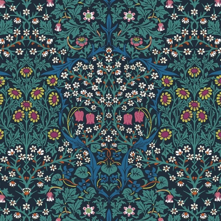Blackthorn is a wallpaper inspired by the iconic prints of William Morris. This House of Hackney wallcovering from the Blackthorn collection has a beautiful pattern full of hawthorn, daisies, tulips and graceful leaves. An Art Nouveau wallpaper that is perfect for a classic, timeless and atmospheric interior.
