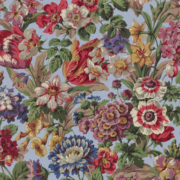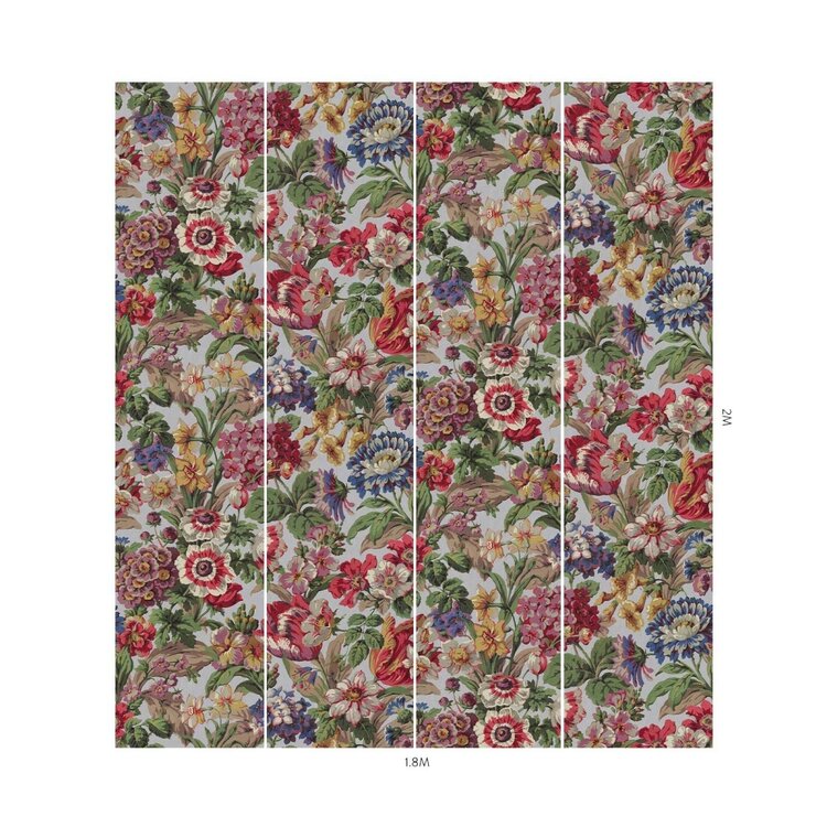 Florescence is a wallpaper with a rebellious floral splendor, not a floral print like your grandmother's. This House of Hackney wallcovering features a lush tapestry of tulips, anemones and primroses against a colorful background. A beautiful wallpaper that is perfect for a chic and colorful interior.