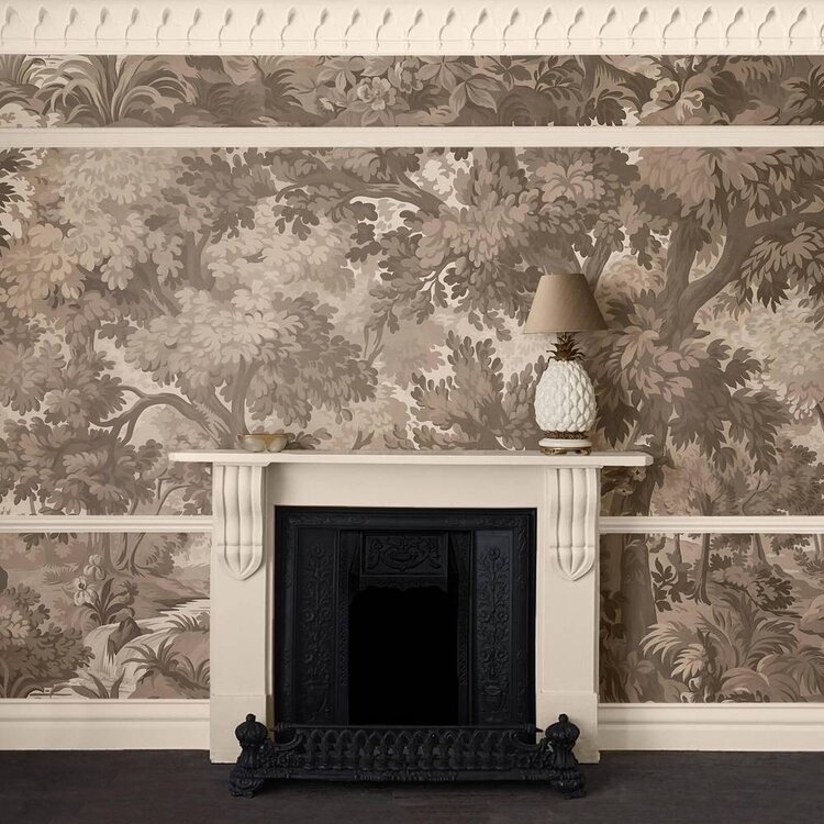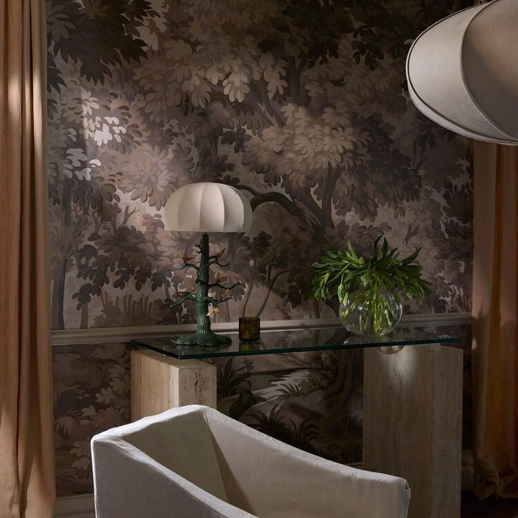 Journey through the leafy delights of French historical archive prints and 16th-century ‘verdure’ tapestries with ARBOREA – a lush green mural wallpaper designed to bring a touch of the old world into your home. ARBOREA wallpaper is perfect for classic, eclectic, country, and bohemian interiors, where its rich, historical aesthetic creates an atmospheric and characterful focal point.