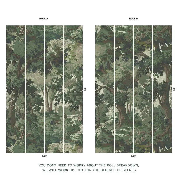 The wallpaper is therefore supplied with two rolls: Roll A and Roll B.