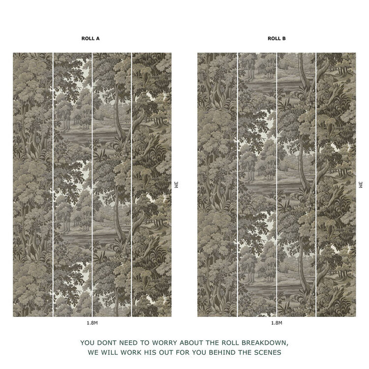 The wallpaper is therefore supplied with two rolls: Roll A and Roll B.
