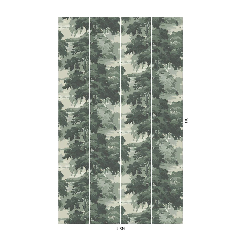 “Retreat into an enchanting dreamscape of lush forest with REVERIE. In a soothing, green color palette of dark green, sage, and gray, you can create your own woodland wilderness and bring your interior daydreams to life.”