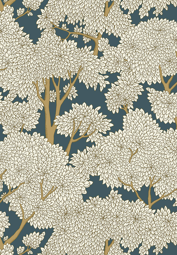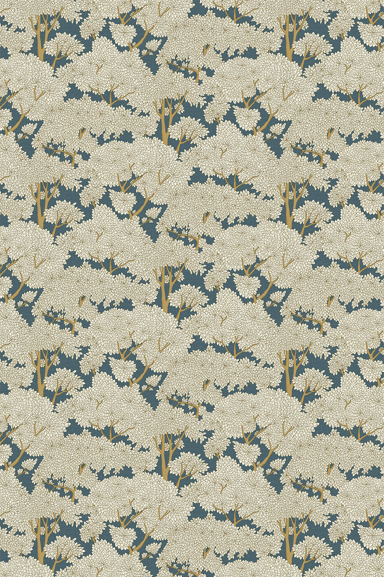 Stockend Woods wallpaper shows trees with lush foliage. This wall covering by Josephine Munsey, from the Portfolio 1 collection, is a beautiful wallpaper that is perfect for a romantic, calm and natural interior.