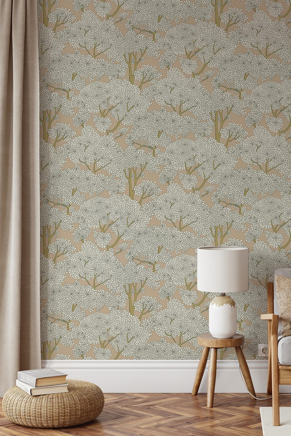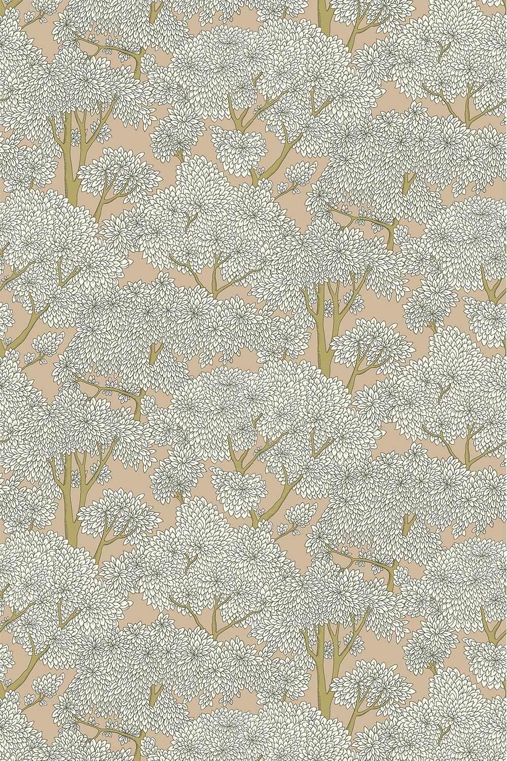 Stockend Woods wallpaper shows trees with lush foliage. This wall covering by Josephine Munsey, from the Portfolio 1 collection, is a beautiful wallpaper that is perfect for a romantic, calm and natural interior.