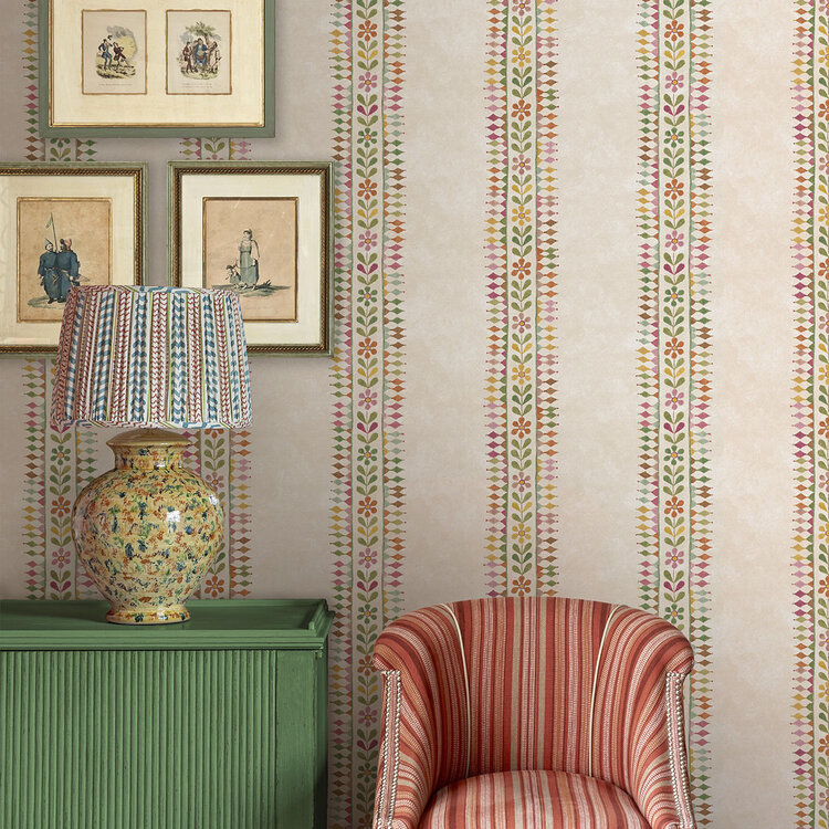 GP & J Baker x Kit Kemp Wallpapers II is a characterful wallpaper collection filled with colour, craftsmanship and playful elegance. The collection features seven distinctive statement designs alongside a refined textured plain wallpaper in 25 colourways, inspired by the warm and luxurious look of fabric-covered walls.