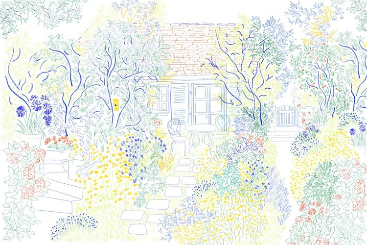 C´est un jardin extraordinaire by Les Dominotiers consists of a collection of panoramic wallpaper themed on extraordinary gardens. Think of a garden full of flowers, a floating garden or a garden at night. Dream away at the designs in gouache, watercolour or pencil.