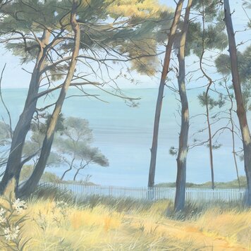 The Douce France collection is a panoramic wallpaper collection by Les Dominotiers, a French brand known for its stylish wall murals and bespoke wallpapers. The idea: a bit like flipping through a sketchbook after a journey — a pure love letter to the diversity of the French landscape, from coasts to mountains, from marshes to Mediterranean towns.