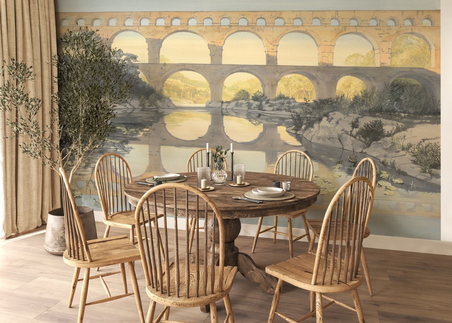 The Douce France collection is a panoramic wallpaper collection by Les Dominotiers, a French brand known for its stylish wall murals and bespoke wallpapers. The idea: a bit like flipping through a sketchbook after a journey — a pure love letter to the diversity of the French landscape, from coasts to mountains, from marshes to Mediterranean towns.