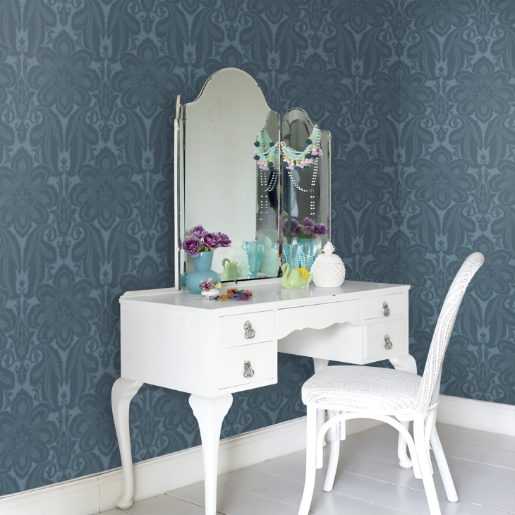 Reminiscent of Spitalfield silk, this wallpaper was found on Albemarle Street, in Piccadilly. It has a huge pattern that repeats every six feet. It was originally done in dark blue velvet on a light background. What is special is that this powerful and expensive wallpaper was discovered in a low bedroom on the first floor. You would rather expect this kind of wallpaper in a more eye-catching place. For example, on the ground floor in a reception room where many guests stayed.