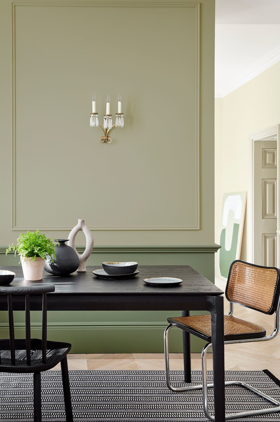 This is Book Room Green: a sandy green shade. This Little Greene paint is warm, soft and earthy. The perfect paint for a timeless, classic and atmospheric interior.