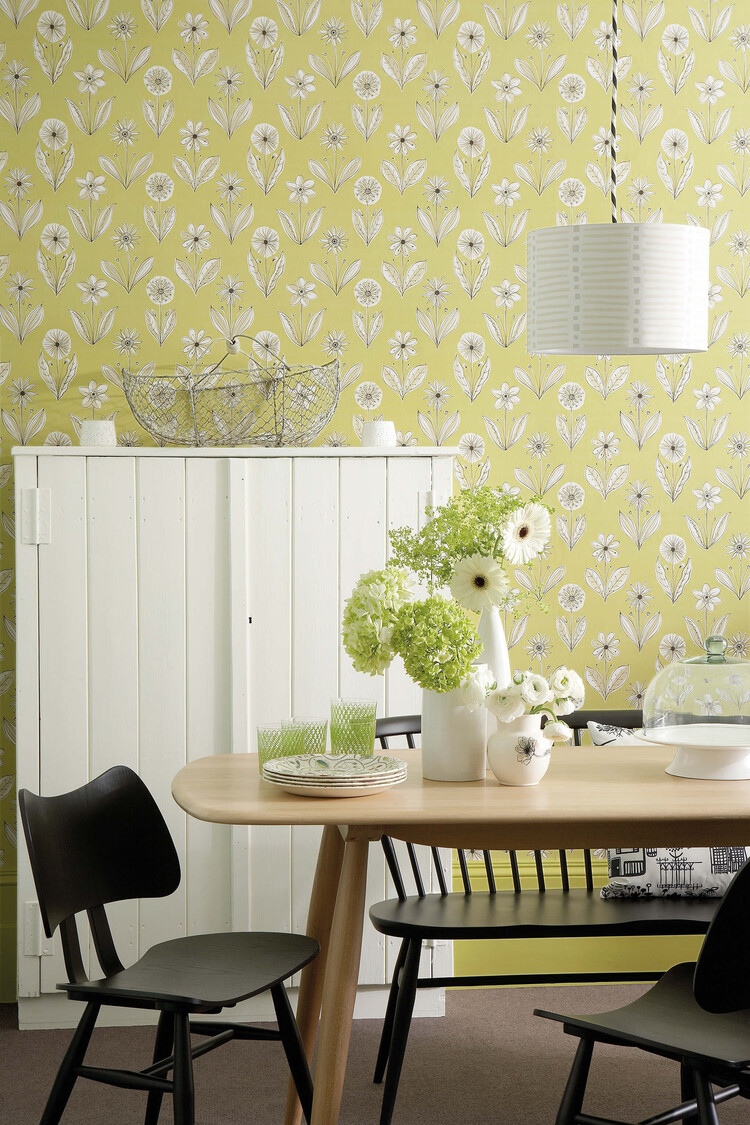 Florette wallpaper from Little Greene has a striking airy design that embodies the 1950s. The design can be found in 'The Architect Book of 100 wallpapers' from 1954. The original wallpaper shows a selection of hand-drawn dandelions that almost disappear against a trellis pattern.