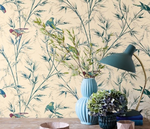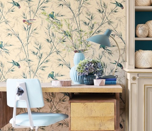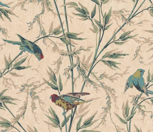 A colorful parrot motif, almost entirely based on one of the wallpaper layers, which were removed from the back of a cupboard on the ground floor of an 18th century terraced house, which was opposite the Great Ormond Street Children's Hospital. The design was machine printed on cellulose paper at the end of the 19th century.