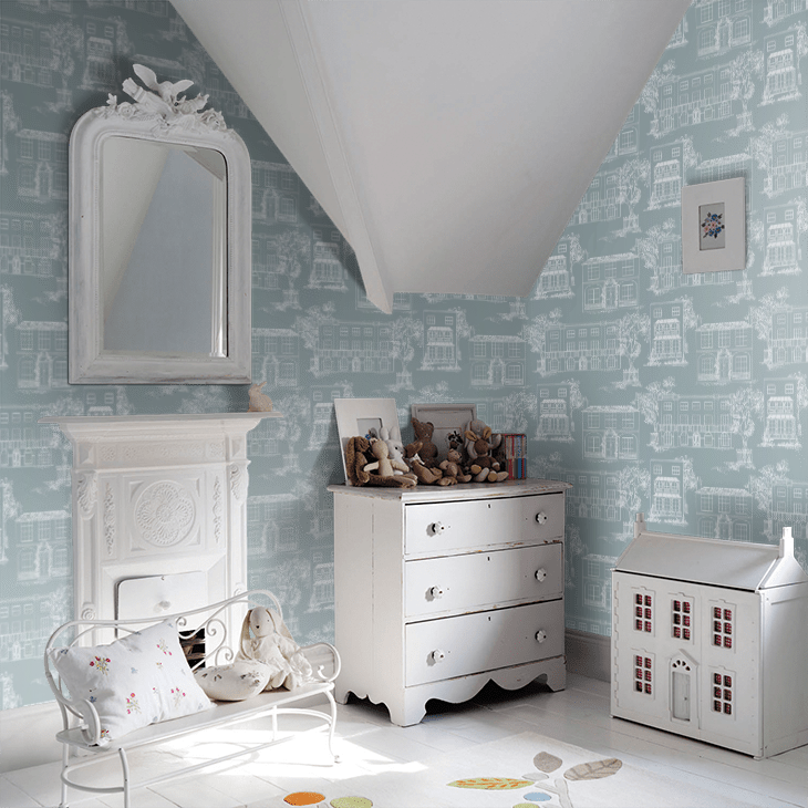 Little Greene produces elegant and sustainable high-quality wallpaper. This relaxed interpretation of an urban scene from Hampstead, from the hand of Els Calvetti, comes from the hand-printed âApsley Collection by John Line & Sons.