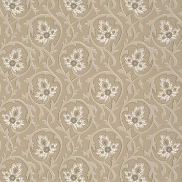This classic leaf pattern was used in one of Oxburgh's attic rooms and the surface was printed for a traditional, picturesque finish. Although the design contains elements of 17th-century Spanish relief and gilt leather, it is believed to date from the late 19th century because the printing substrate is machine-printed paper.