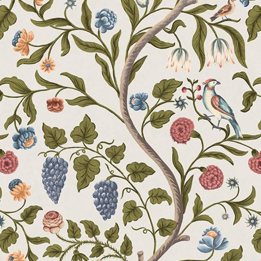 This tree of life design comes directly from the leather wall covering in the dining room of Bateman's, a Jacobean mansion in East Sussex. Detailed designs, such as this one, were inspired by 17th-century Indian chintz, which often depicted sinuous flowering trees with birds among the branches.