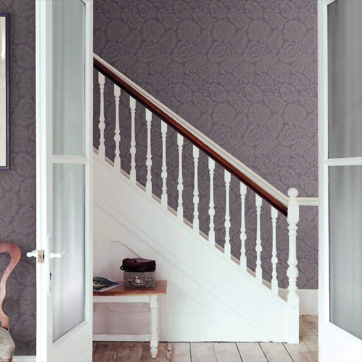 A typical historical damask, whose design source was originally a woven silk from the 19th century. This effect is now imitated by the printing technique. As with the 'High Street' design from the London Wallpapers III collection, three examples of this pattern are known from multiple locations, which makes it likely that it was produced on a fairly significant scale from the 18th century to the late 1800s. 19th century. This corresponds to the production capabilities of the wallpaper industry in that period.