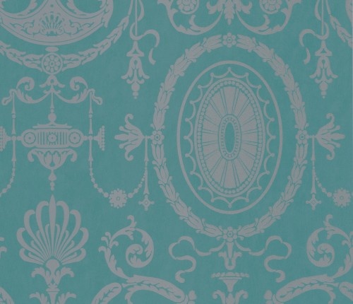 This wallpaper is printed in a single colour, making it the younger sister of the Marlborough design, with the same delicate elegance. Amazingly, both patterns were found in the same building, Marlborough House, which overlooks St James' Park. The date indicates the likely origin of the wallpaper used in Marlborough. The design itself has neoclassical touches, which belong more to interior architecture, which was fashionable in the early 19th century.