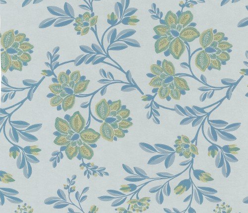 Stitch (ca. 1940) is inspired by embroidered chintz cotton. The use of stippling (dot-work) was popular in embroidery and printing, especially at a time when block printing was seen as a status indicator. In the late 19th and well into the 20th century, ornate patterns in the home were a striking symbol of wealth and associated with prosperity. The use of two print colors makes this paper particularly easy to combine with paint colors and other elements in the room.
