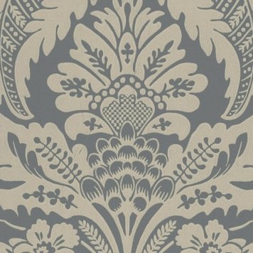 A classic damask design very typical of the popular large-scale pomegranate patterns of the mid-18th century. This would originally have been a flocked wallpaper that hung in a grand English house. Flocked wallpaper was an English specialty and in fact an imitation of expensive textiles. However, the production of flocked wallpaper was expensive. This was a convincing statement of luxury and social status.