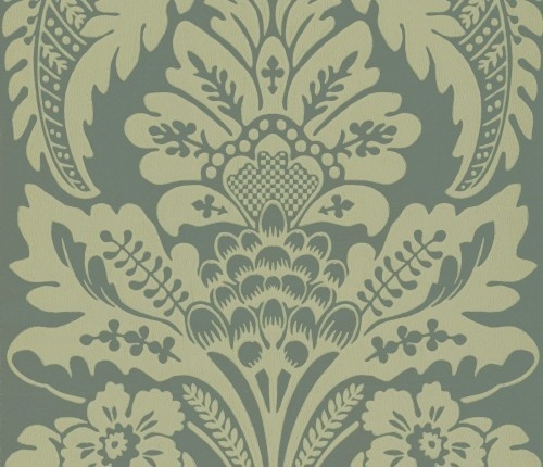 A classic damask design very typical of the popular large-scale pomegranate patterns of the mid-18th century. This would originally have been a flocked wallpaper that hung in a grand English house. Flocked wallpaper was an English specialty and in fact an imitation of expensive textiles. However, the production of flocked wallpaper was expensive. This was a convincing statement of luxury and social status.