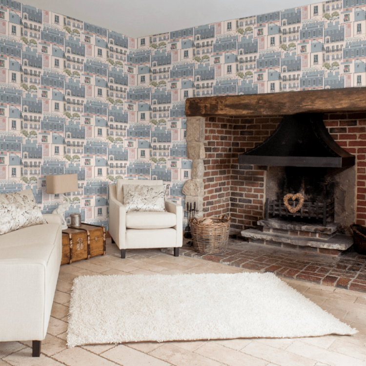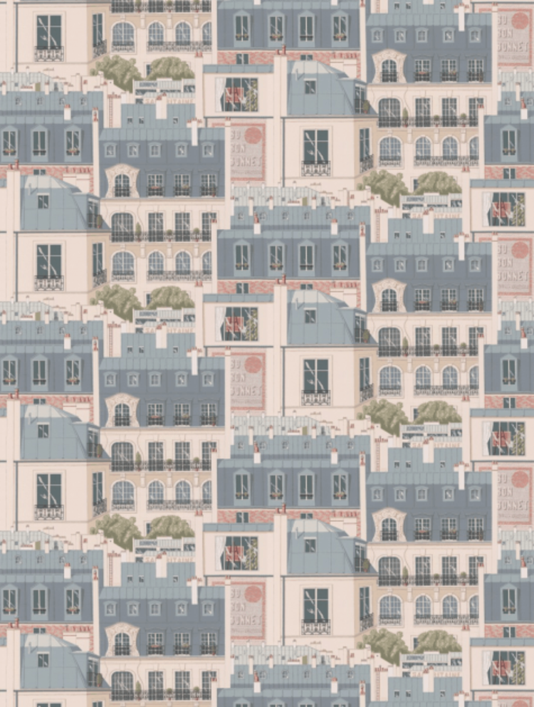 The roofs of Paris, a nice design of houses in Parisian style. Shown here in the slate gray color Ardoise. Request sample for true color match. Wide paper size.