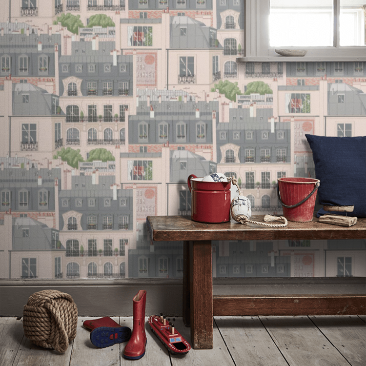 The roofs of Paris, a nice design of houses in Parisian style. Shown here in the slate gray color Ardoise. Request sample for true color match. Wide paper size.