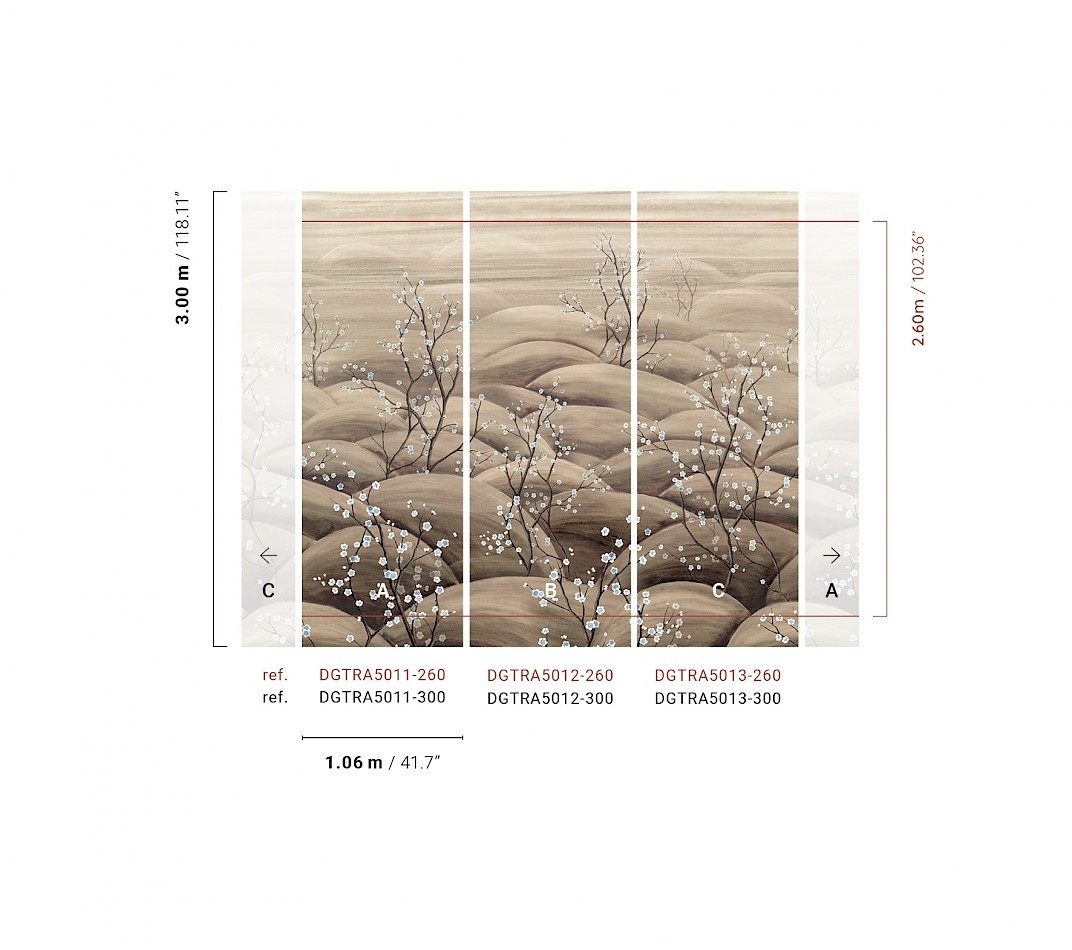 Please note: This mural consists of 3 panels. These panels are each 2,6 meters high and 106 centimeters wide. When put together, the mural is 3 meters high and 3,81 meters wide. You complete this mural by ordering the 2,6 panels with item codes DGTRA5011, DGTRA5012 and DGTRA5013 (see image). This panel is also available in a 3-meter length and costs €221.