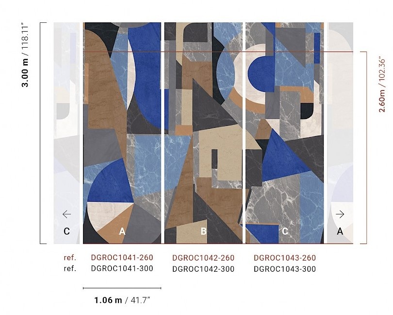 Please note: This mural consists of 3 panels. These panels are each 3 meters high and 106 centimeters wide. When put together, the mural is 3 meters high and 3,18 meters wide. You complete this mural by ordering the 3 panels with item codes DGROC1041, DGROC1042 and DGROC1043 (see image).