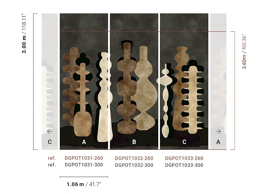 Please note: This panel consists of 3 lanes. These lanes are each 3 meters high and 106 centimeters wide. When put together, the panel is 3 meters high and 3.18 meters wide. You complete this mural by ordering the 3 panels with item codes DGPOT1031, DGPOT1032 and DGPOT1033 (see image).