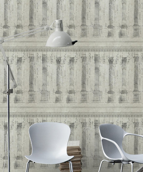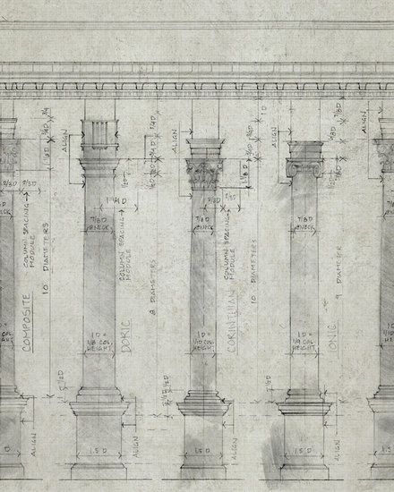 Mind the Gap Colonnade wallpaper has a pattern of beautiful classical columns, as if you were sitting at the table with the architect of the last century.