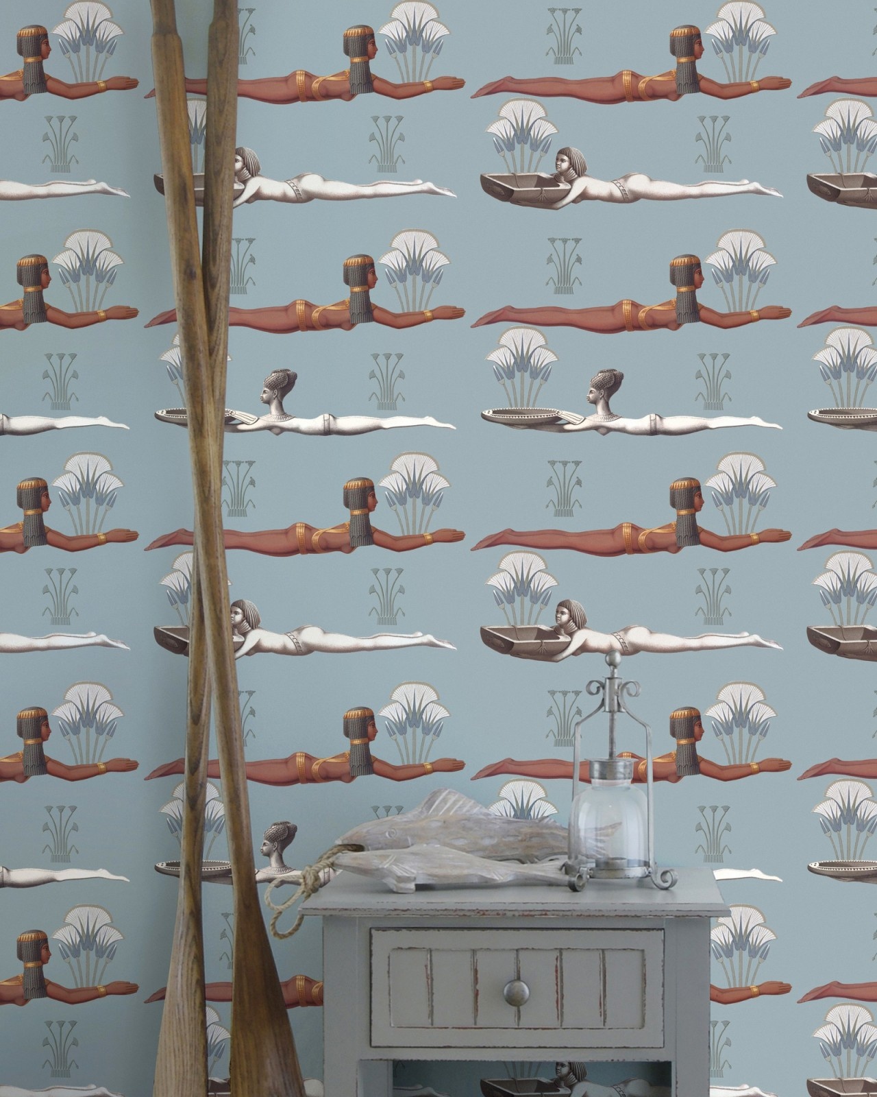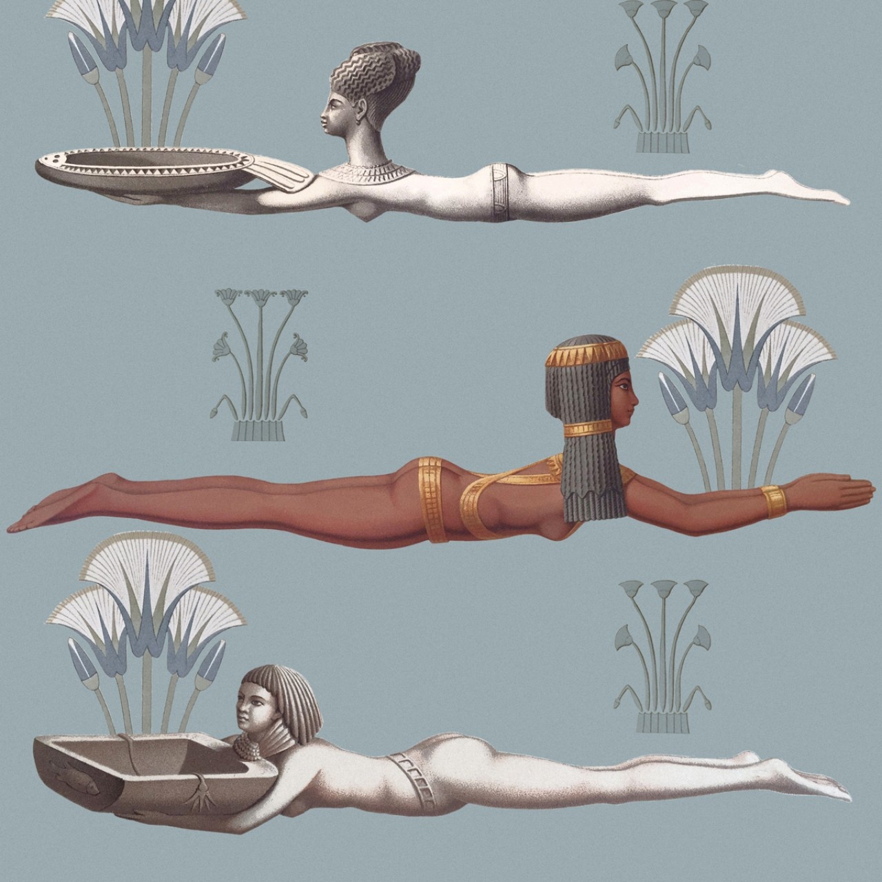 A decorative design on a pale blue background, inspired by the richness of the Egyptian culture.
