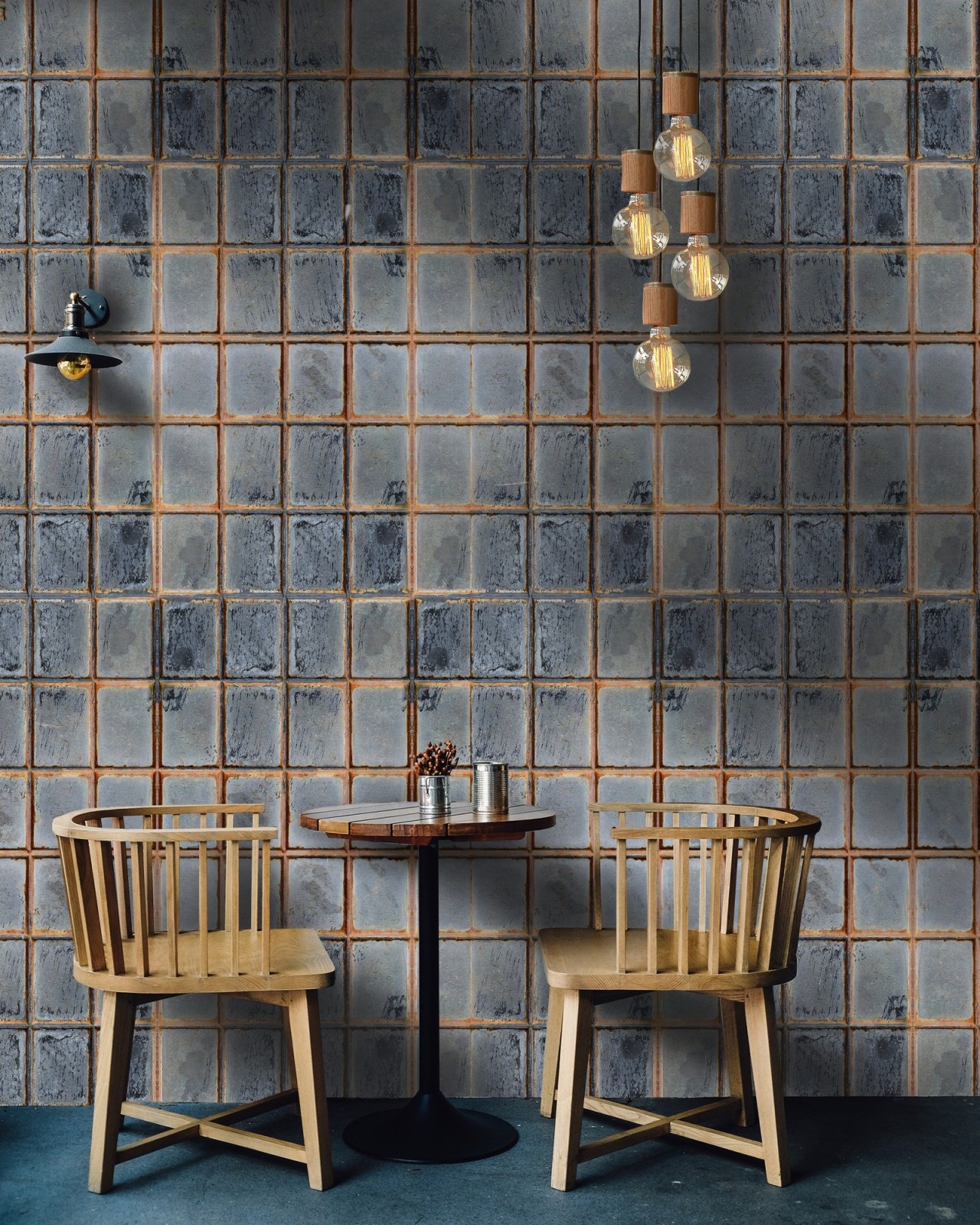 An interesting design that works perfectly for an edgy look, illustrating an old wall in rust metallic hues.